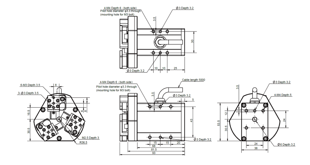 CGE-10 電動(dòng)夾爪安裝尺寸圖: