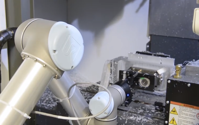 為了使眼鏡造型與質(zhì)量都更好,眼鏡原料被切割成小塊,然后在數(shù)控機(jī)床上切割框架,數(shù)控機(jī)床由UR機(jī)器人和Robotiq夾爪管理。機(jī)器人撿起原料,將其裝載到第一個(gè)位置,關(guān)上門,按下go按鈕,然后在第二個(gè)位置再次進(jìn)行操作。然后,它取出成品眼鏡并將其放入桶中。眼鏡在準(zhǔn)備出貨之前要經(jīng)過(guò)許多微調(diào)步驟。
