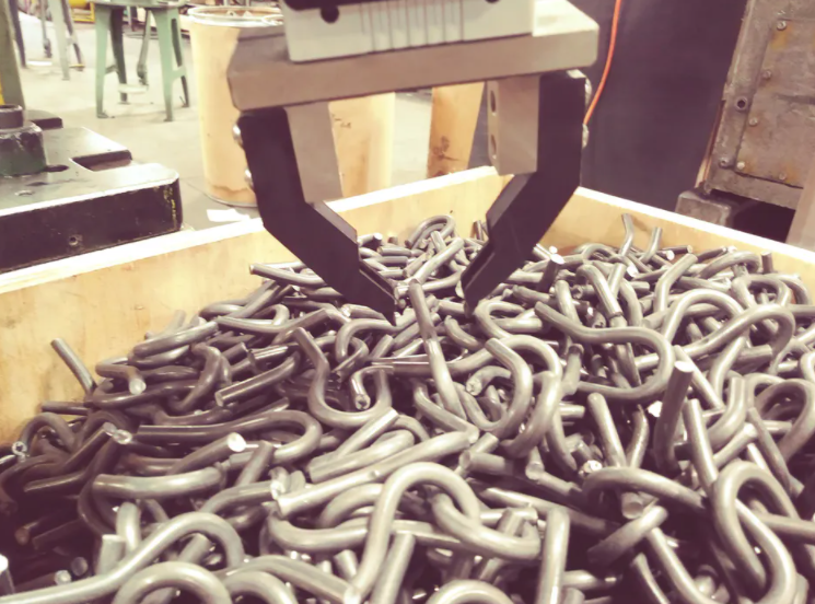 在處理掛鉤或彈簧等對象時,Bin picking變得更具挑戰性(圖1)。例如,Ace Wire Spring(美國賓夕法尼亞州McKees Rocks;www.acewirespring.com)處理涉及將金屬絲彎曲成各種形狀的過程,包括彈簧和金屬絲形狀。由于彈簧和電線在放入箱子時會纏繞在一起,因此自動拾取和放置這些對象會帶來重大挑戰。此前,該公司的工藝是在一臺機器上形成吊鉤,然后將其傾倒到一個箱子中,然后轉移到車間的另一側。然后,一名員工一次一個地從垃圾箱中取出鉤子,將鉤子的末端插入壓力機,壓平末端,使其變寬。然后,鉤子會轉到另一個工位,在那里,另一名員工在鉤子上放一個珠子,珠子會被彈簧壓在一起,彈簧將彈簧固定到位。例如,這些掛鉤和彈簧總成可用于牽引拖車和車庫門開啟器。