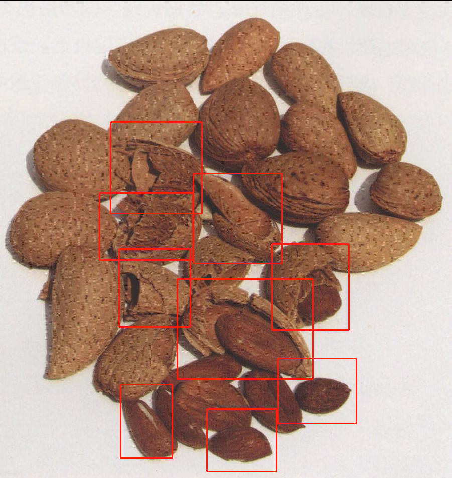 杏仁是生活中常見的堅(jiān)果,因富含蛋白質(zhì)、胡蘿卜素、維生素以及鈣、磷、鐵等營養(yǎng)成分,人們將大扁稱為抗癌之果。杏仁含有豐富的脂肪油,有降低膽固醇的作用,因此,杏仁對防治心血管系統(tǒng)疾病有良好的作用。所以人們對于杏仁的需求比較高,在加工過程中,往往會(huì)因?yàn)椴僮鞑划?dāng)使得杏仁變碎,也可能在生產(chǎn)過程中會(huì)有不合格的杏仁產(chǎn)生。對于杏仁的分類檢測需要一個(gè)檢測速度快、穩(wěn)定性高、精準(zhǔn)率高的視覺檢測系統(tǒng)。