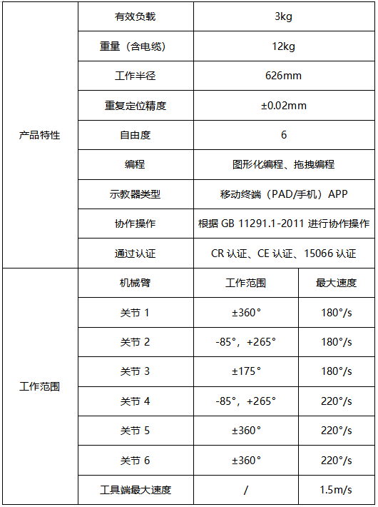 JAKA Zu 3協(xié)作機器人產(chǎn)品參數(shù)