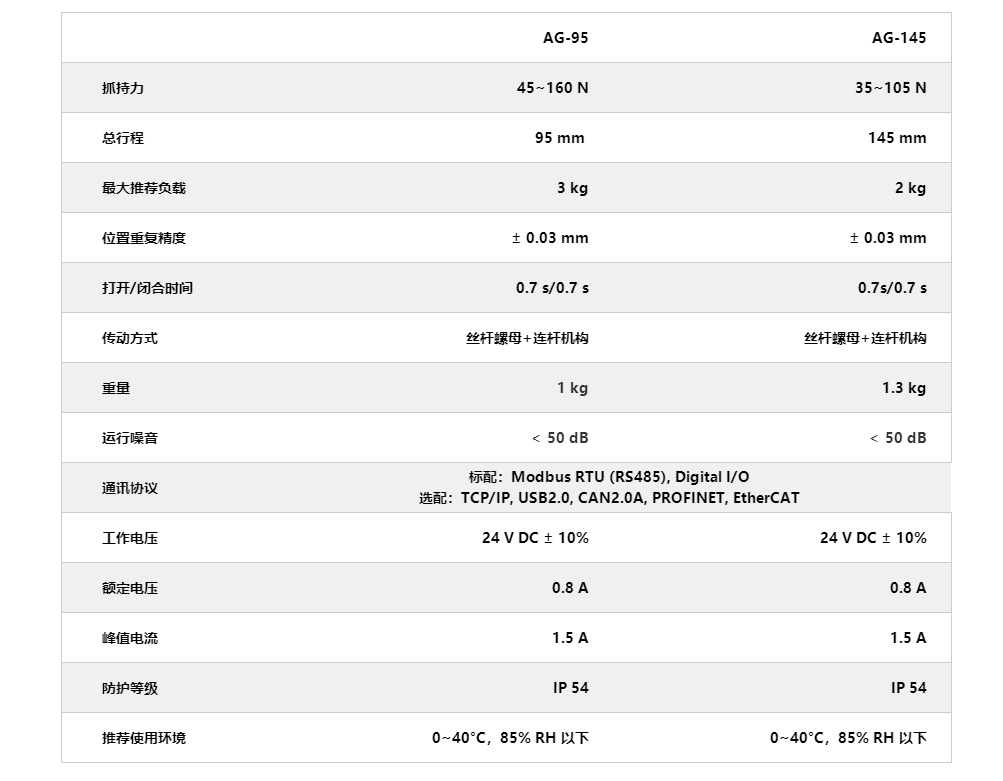 大寰AG系列夾爪參數(shù):