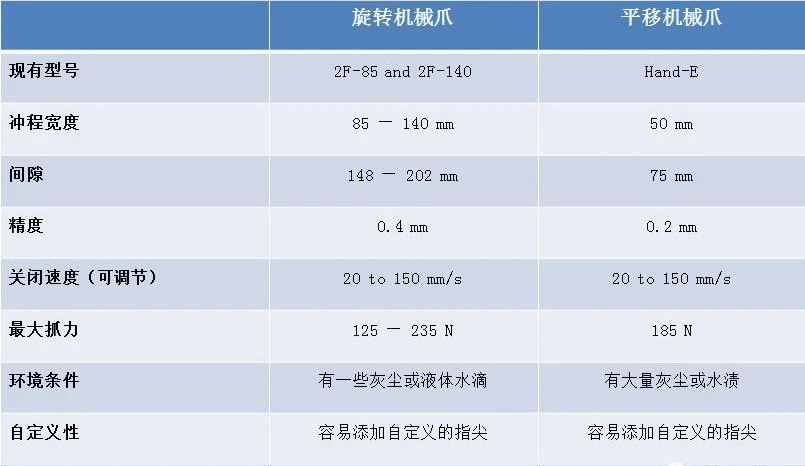 Robotiq兩種機械爪的數據比較: