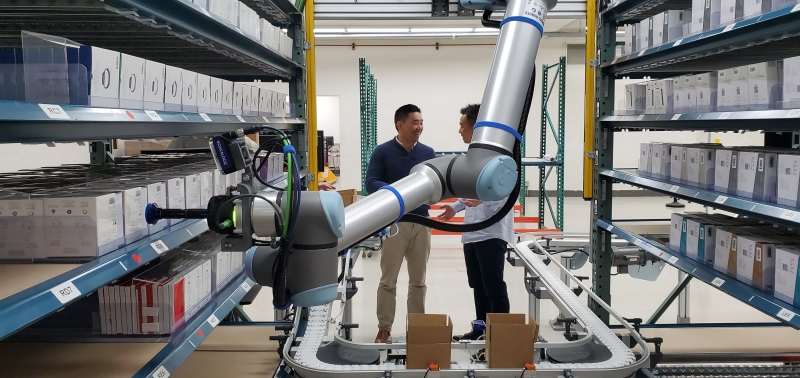 優(yōu)傲機(jī)器人本身具有的簡(jiǎn)易快速編程,豐富的網(wǎng)絡(luò)接口,人性化的操作界面,雙機(jī)相互通信協(xié)同等特性,為實(shí)現(xiàn)雙機(jī)協(xié)作帶來了可能。優(yōu)傲憑借超強(qiáng)的協(xié)同工作性,為生產(chǎn)效益改進(jìn)帶來貢獻(xiàn)。