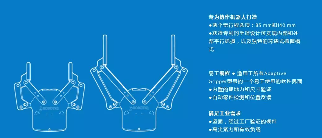 協作機器人的出現解決了這一難題,Robotiq 夾爪,即插即用,應用廣泛,與所有主要的工業機器人兼容。