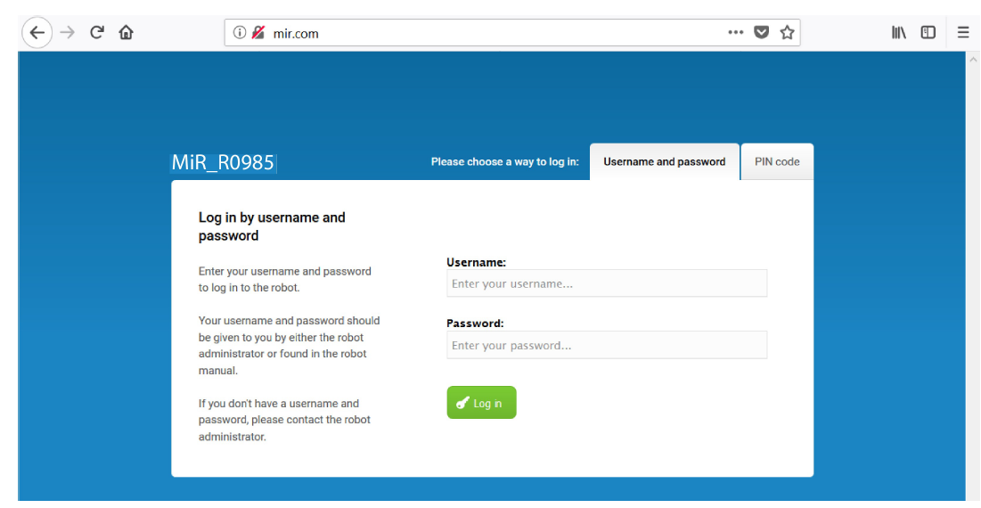 MiR機(jī)器人WiFi接入點(diǎn)和訪問網(wǎng)絡(luò)界面的用戶名和密碼位于MiR 用戶名和密碼文檔中。包裝箱內(nèi)包括該文檔與機(jī)器人。