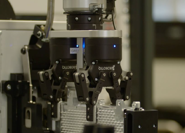 Diehl Aerospace為空客A350 XWB生產(chǎn)計算機系統(tǒng)。 由于這架飛機的訂單如火如荼,他們的質(zhì)量測試部門需要迅速增加容量。 無需實施昂貴的永久夜班,因為結(jié)合了兩個Robotiq 2F-85自適應(yīng)夾爪,Robotiq FT 300力扭矩傳感器和Universal Robot UR10的自動化解決方案提供了高效且靈活的機器人單元。