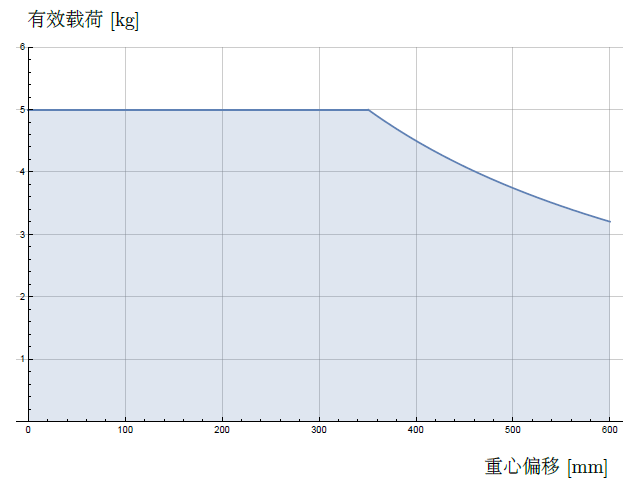 圖4.3 UR3 機器手臂最大允許有效載荷與重心偏移之間的關系。