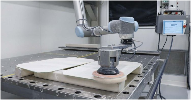 在UR機(jī)器人未部署之前,他們必須在兩個(gè)8小時(shí)輪班完成,而不是三個(gè)倒完成相同數(shù)量的工作。UR機(jī)器人部署后,機(jī)器人自動(dòng)化每層裝甲玻璃的拋光過程,為以前分配到這項(xiàng)任務(wù)的操作員提供了幫助。“它讓他們不再受到肩膀的震動(dòng)或重復(fù)動(dòng)作。機(jī)器人的安裝非常受歡迎。