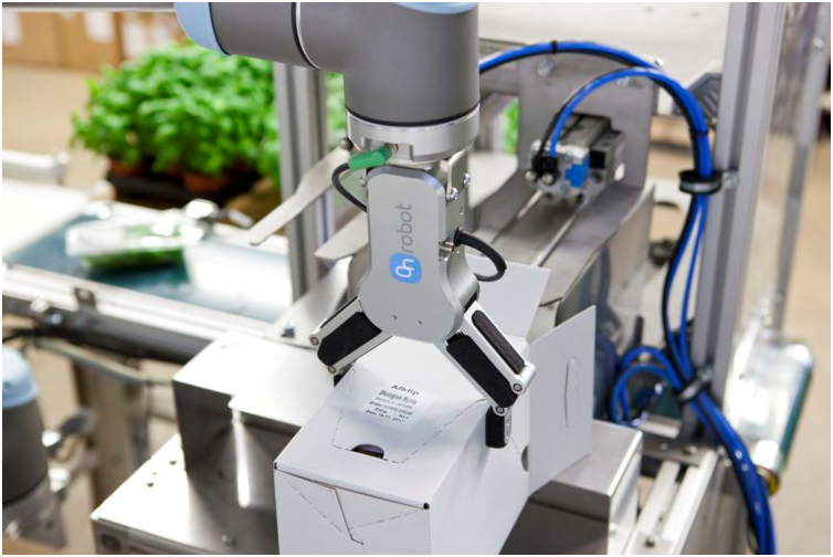 最新的自動(dòng)化投資之一是一個(gè)靈活的包裝生產(chǎn)線,配備了來(lái)自優(yōu)傲的協(xié)作機(jī)器人,這是一個(gè)配備OnRobot RG6夾具的合作機(jī)器人。機(jī)器人手柄的兩個(gè)“手指”采用智能,先進(jìn)的技術(shù),在直觀地抓握和移動(dòng)物體時(shí)模仿人類的觸覺(jué)。工廠經(jīng)理Jørgensen解釋說(shuō):“我們正在尋找一種可以輕輕提起草藥和花朵而不會(huì)壓碎它們的夾具。我們選擇了一款R6G抓手,其特點(diǎn)是輕柔細(xì)致的抓握動(dòng)作以及精確性和靈活性。我們的新解決方案可自動(dòng)折疊包裝紙盒,并在折疊盒中放置草藥細(xì)切。”