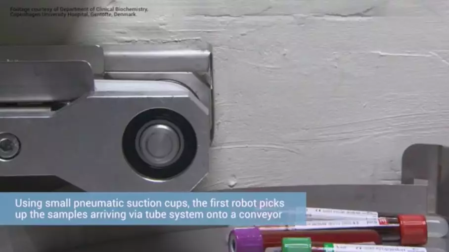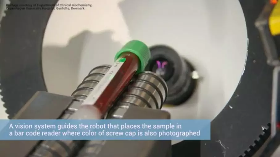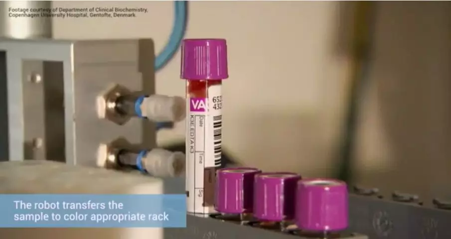 哥本哈根大學(xué)醫(yī)院采用兩臺UR5機(jī)器人,優(yōu)化血液樣本的處理和分類。借助這兩臺優(yōu)傲協(xié)作機(jī)器人,在送檢樣本增加20%的情況下,實(shí)驗室也能夠在1小時內(nèi)交付90%以上。