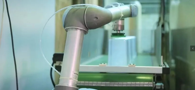 在這個項目中,協作機器人靈活部署的優勢也非常明顯!它可以自行折疊并在非常狹小的空間內操作。每隔兩三個星期,用戶就會把機器人移動到另一臺設備上進行工作。即使之前沒有進行預先編程,也很容易調試上手。不需要使用的時候,將機器人恢復到put-into-box模式可輕松收納在紙箱中。