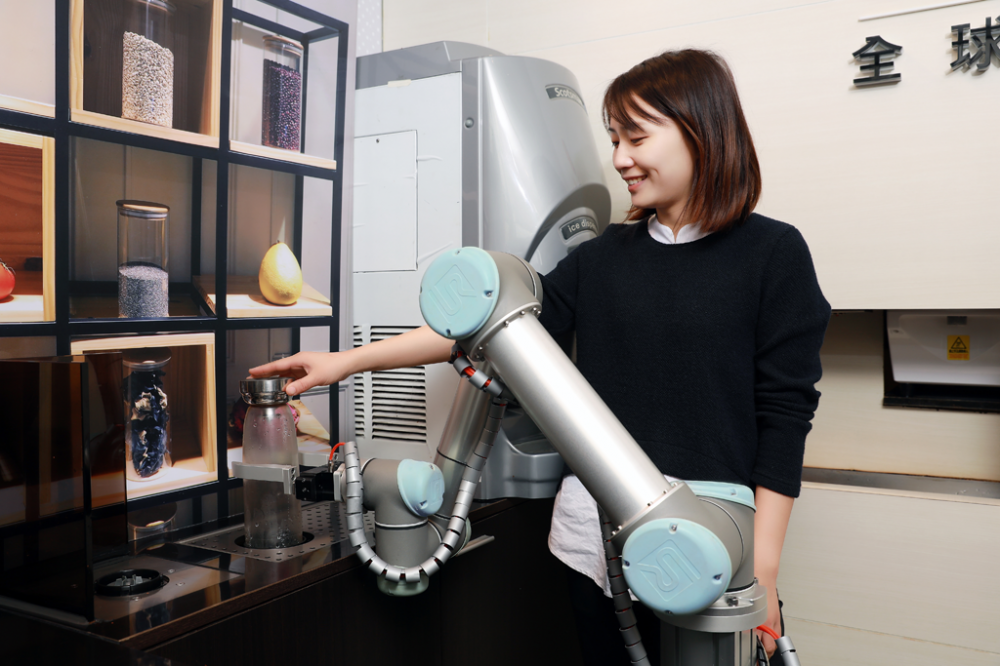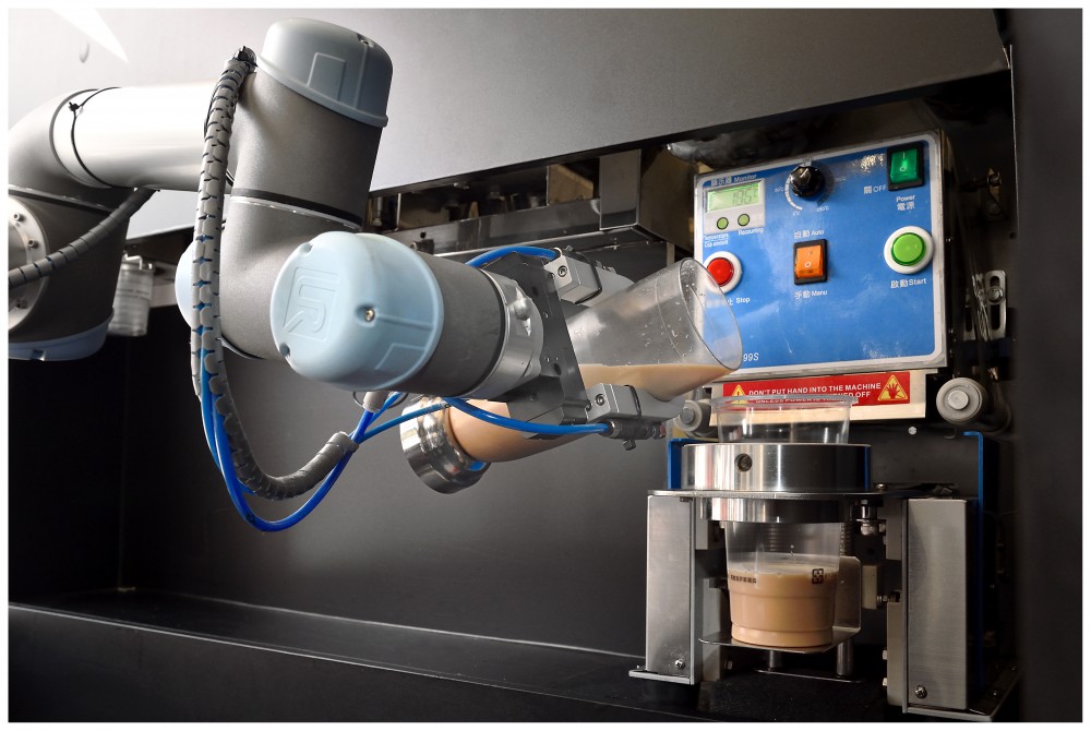 "Babo Arms是全球第一家自動(dòng)化茶飲店,自成立之處就獨(dú)家引進(jìn)了Universal Robots的協(xié)作型機(jī)器人進(jìn)行茶飲調(diào)制,通過使用UR協(xié)作型機(jī)器人,能夠更精準(zhǔn)地保證每一杯茶飲的質(zhì)量。此外,Babo Arms讓員工能夠?qū)W⒂陂_發(fā)制作創(chuàng)新飲品與客戶服務(wù)優(yōu)化,發(fā)揮人力價(jià)值,從而成功打造精品級手搖飲料店。