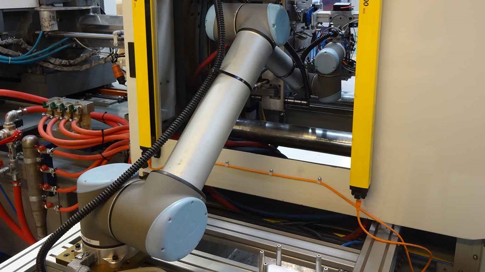 T公司決定試用兩臺六軸 UR10 機(jī)器人,將其編程用于模內(nèi)建模、傳遞模塑和共注成型任務(wù)。
