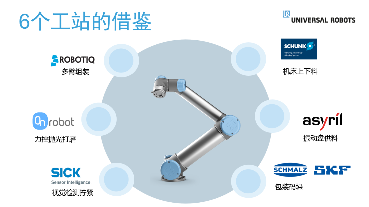 UR協作機器人在應用上除了單機具備的優勢外,還可以根據需要任意型號、安裝位置的組合,增強靈活性。