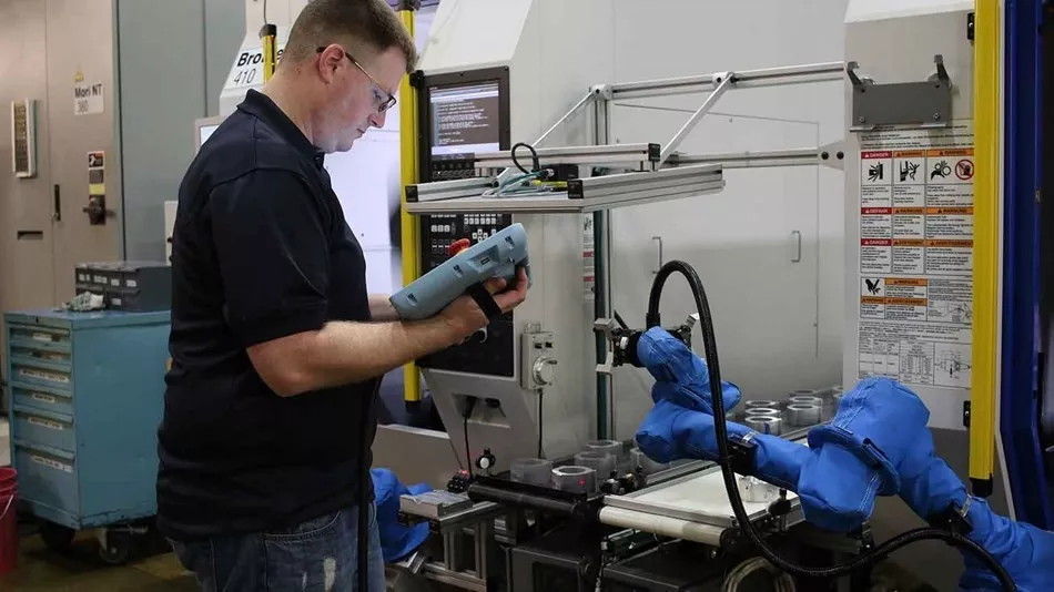 美國印第安納州的Task Force Tips早在1990年就引入機器人輔助生產(chǎn)。當時的機器人只能安裝在固定機器上進行作業(yè),不能隨意移動到其他機器上。當安裝機器人的固定機器磨損老化后,價值10萬美元的機器人便無任何用武之地了。