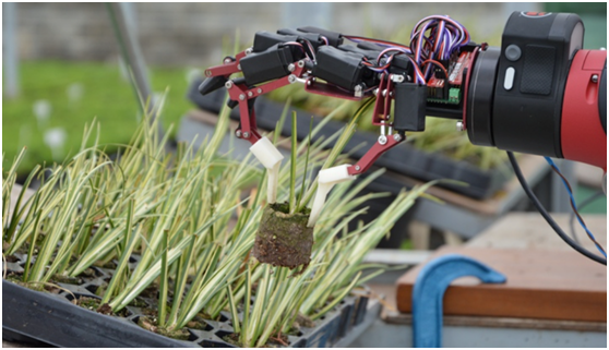 倫敦國王學院的GROWBOT(用于觀賞植物生產任務的種植者 - 可重編程機器人)項目正在使用Sawyer合作機械臂來幫助溫室工作者采摘植物。GROWBOT旨在讓非專業用戶使用機器人進行重復性任務,并幫助減輕季節性勞動力的短缺。它利用機器學習靈活地自動處理幼苗,草藥和其他植物。