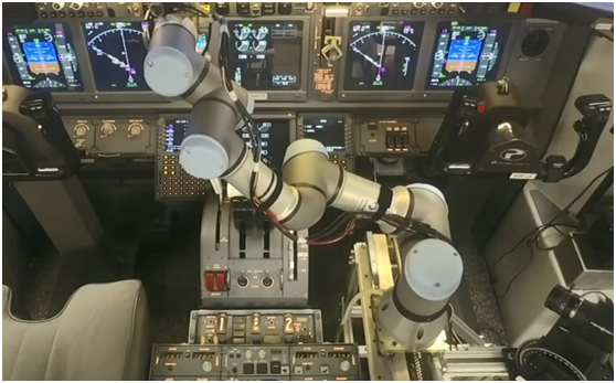 波音公司使用UR3機械手臂作為其機器人副駕駛概念的一部分。目標是“創建一個可移植且可擴展的硬件和軟件工具箱,在各種軍用和民用飛機上引入新的自動化水平,最終降低機組人員的需求。”
