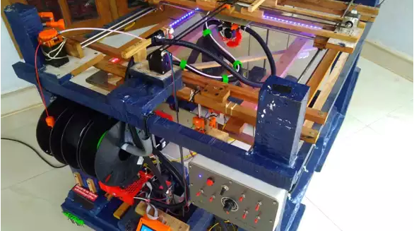 打印機的框架是用從他老房子里收集的木頭制成的。他在網(wǎng)上研究了一下3D打印機的原理。花費了幾個月的時間才完成這個項目,每次試用后他都在不斷升級。