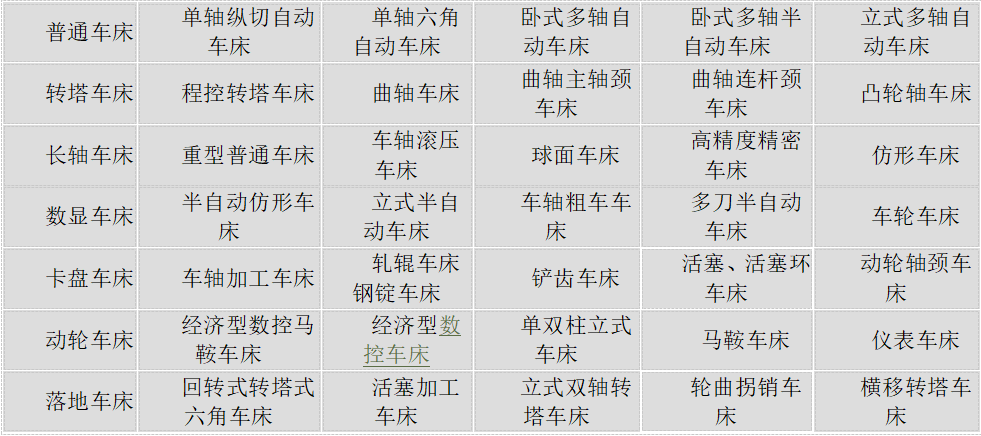 車床分類表
