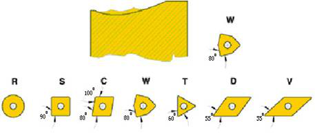 刀片形狀主要依據被加工工件的表面形狀、切削方法、刀具壽命和刀片的轉位次數等因素選擇。